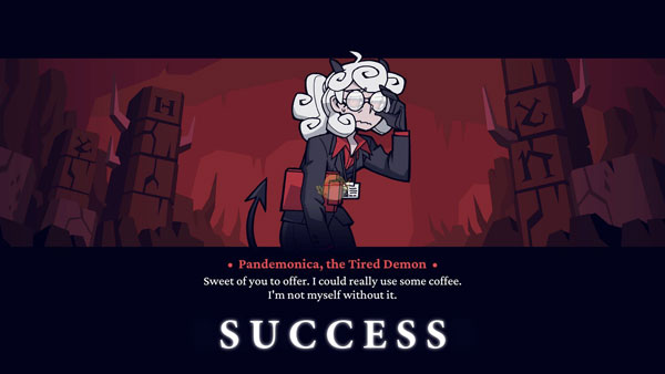 攻略:关卡VIII,攻略时与「地狱女皇」路西法对话中,第一次选择选项2「不,谢谢。但是您可以加入我的后宫」,第二次选项选择2「我可以提供咖啡,回合制策略及巧克力煎饼。」,即可获得。