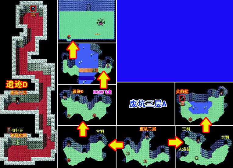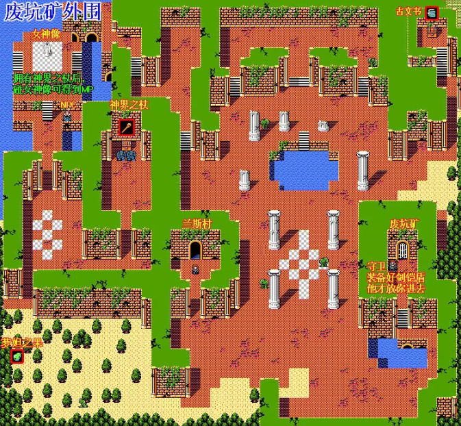 在地图的东北方向藏着一个宝箱,里面装有名为“いにしえのせきばん”的古代版画。当角色等级提升到3级后,就能去处理位于地图中部的两个石像怪,击败它们后可以获得“しんかいのつえ”神界之杖。拿到这根法杖后,前往地图西北方向的女神像那里,就能获得MP的相关能力了。