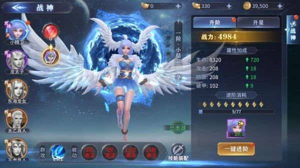 刚解锁的战神角色各项基础数值都比较薄弱,通过消耗相同角色的碎片能够强化它的生命值、攻击力、防御力等核心属性,此外还能借助升星系统进一步提升整体战斗能力。