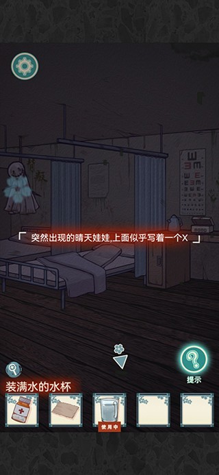 3、桌子上箱子的密码,需依照那个红色视力表的方向(左右左下)来获取玻璃药瓶与麻布(麻布同样要用水壶沾湿)