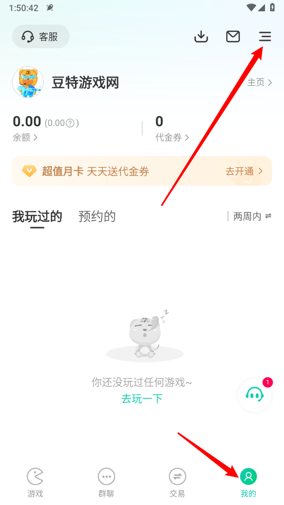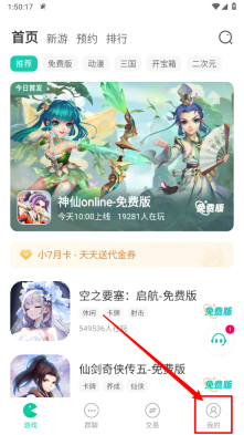 1启动小7游戏后,界面底部会显示游戏、群聊、回收、交易等功能入口。
