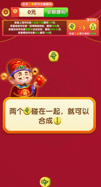 合合富贵玩法就是让玩家控制棋子,通过合成相同等级的棋子来升级,每合成一次就能拿到红包奖励,挺吸引人的。游戏画面做得挺精致,音效也挺悦耳,玩起来感觉挺舒服。操作特别简单,基本上一上手就会,不需要什么复杂的学习过程。而且,随着你合成的棋子等级越来越高,解锁新的等级还能得到额外的红包,这让人挺有成就感的。