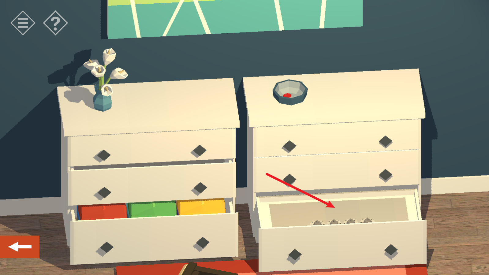 7、接着拿到柜子上的红色钥匙,可以打开这里红把手的门。