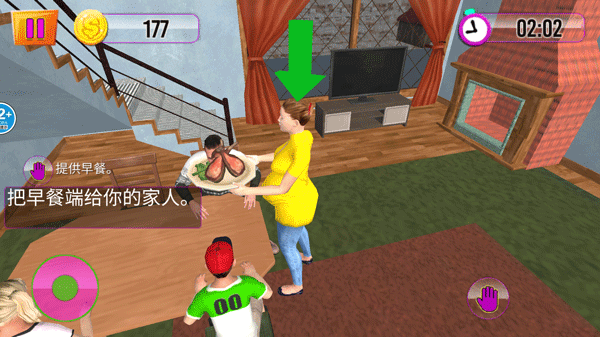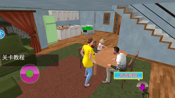 1、在游戏里你将扮演一名家庭主妇,需要借助左下角的摇杆移动至指定位置。