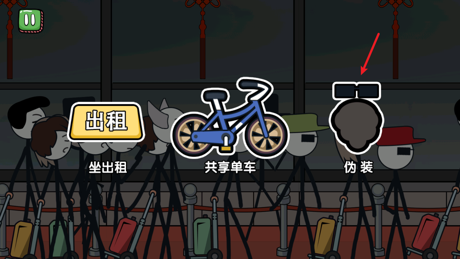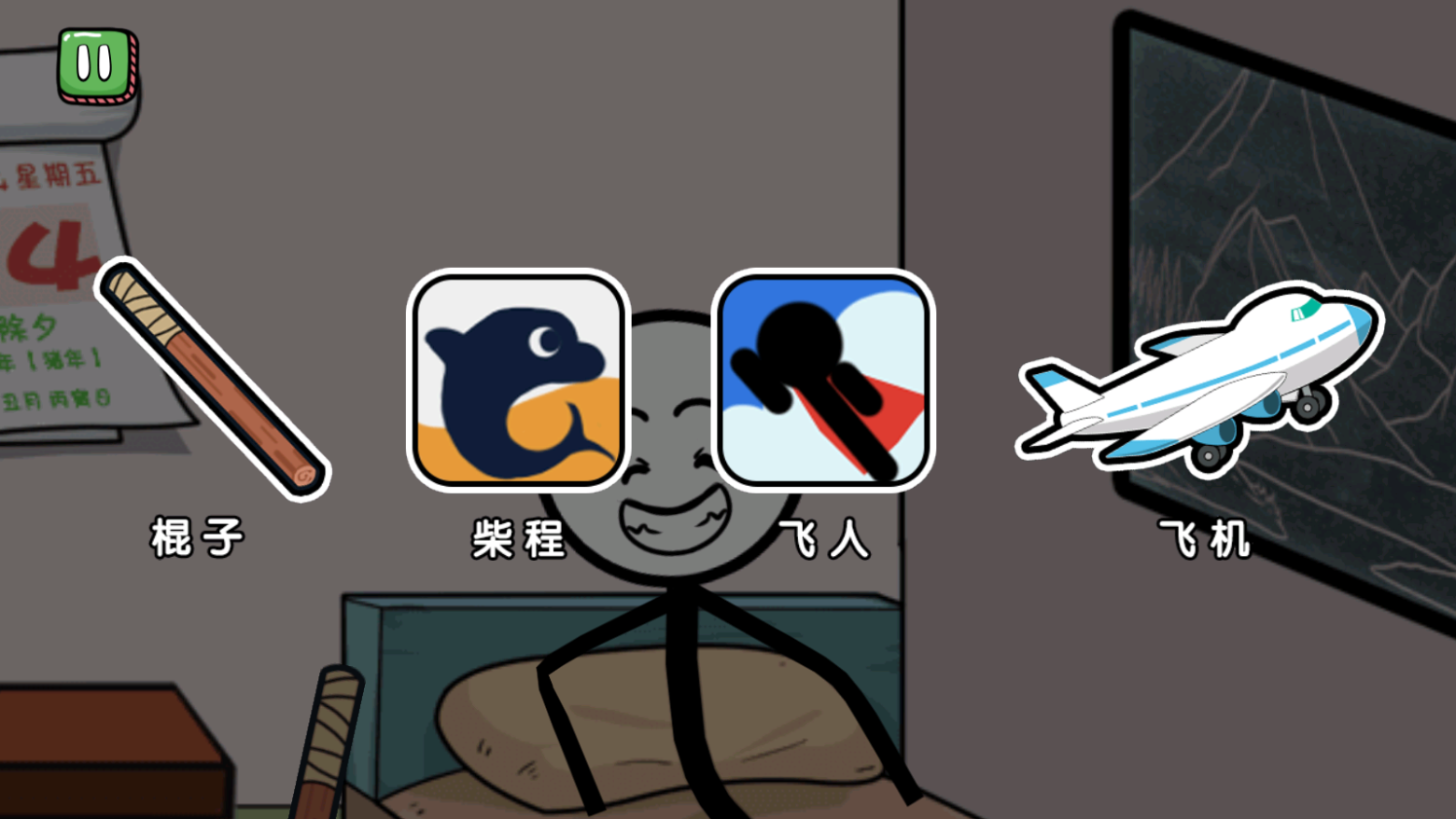 3、进入之后,火柴人想象着自己回家过年,需要选择一种出行方式。