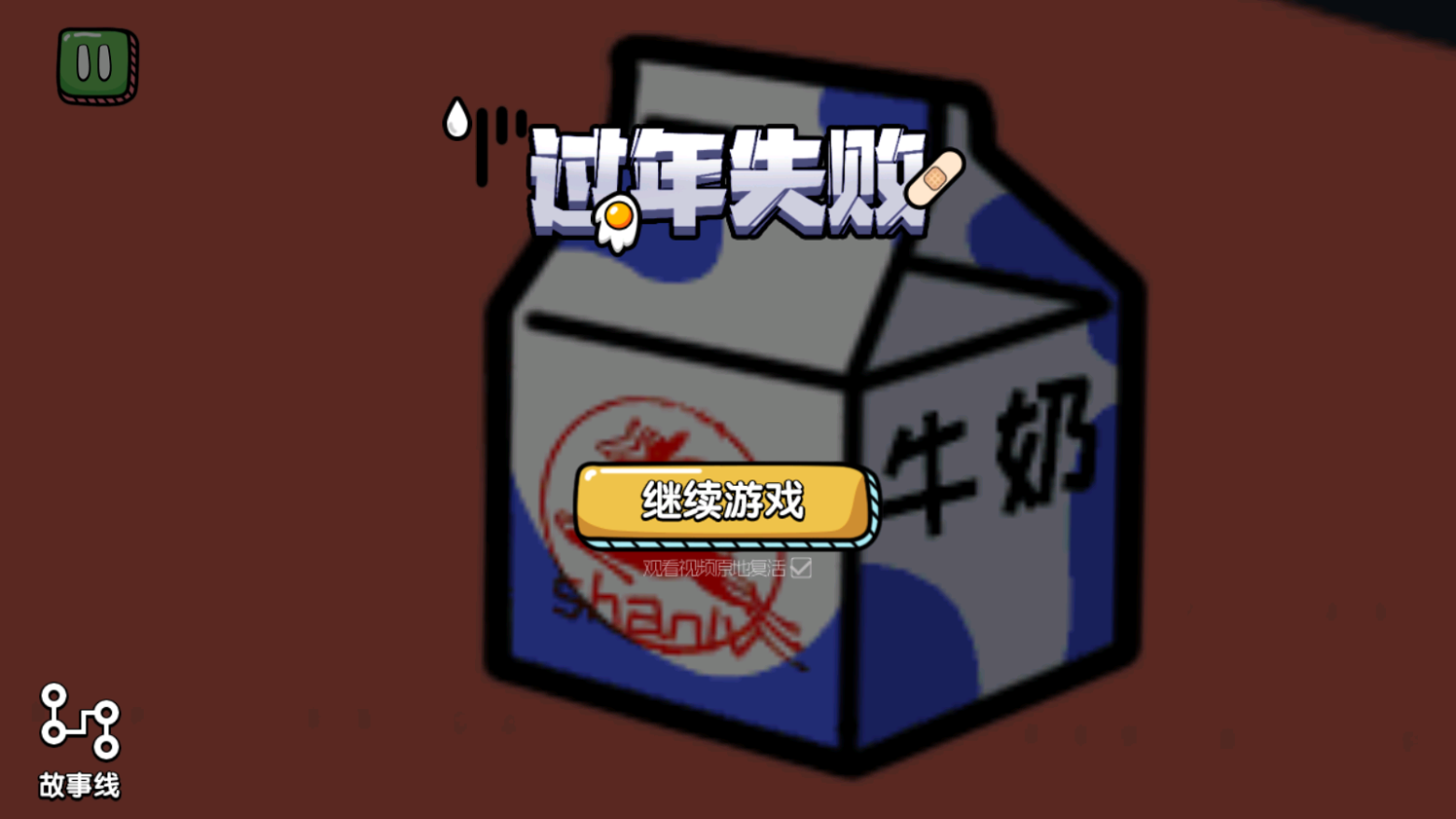 5、我们选择喝掉牛奶,结果没走两步就直接倒下了,游戏失败!(给了牛奶特写后才发现是三鹿,哈哈)