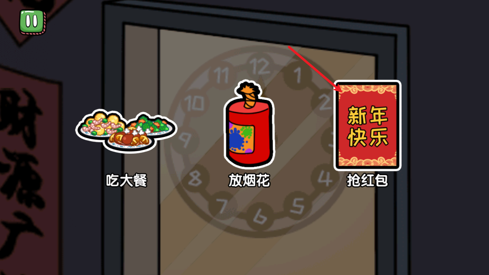 7、我们选择伪装之后顺利躲过了追杀,然后成功回家过年了。可以选择一种方式庆祝一下。