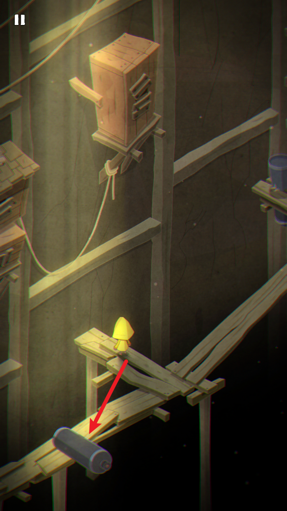 5、在最后快要走完的时候,这里会滚下来滚筒,点击两下屏幕让人物跑动,然后躲在这里就行。