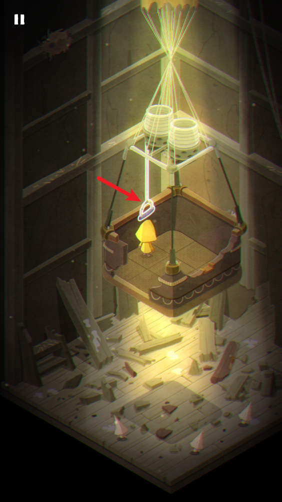 2、点击拉绳之后,平台就会掉落到地面上,这时候点击这里的洞口即可进入下一场景。