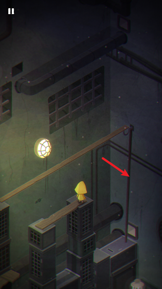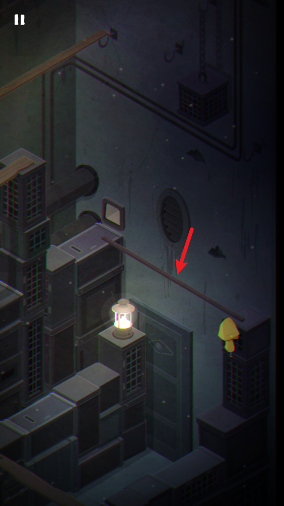 10、向前走,来到这里的平台,将木棍推到墙上。