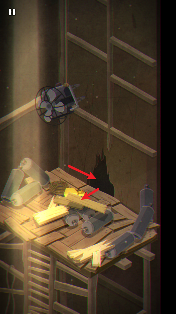 7、爬上平台之后,将这里的两块木板拿下来,点击洞口即可前往下一场景。