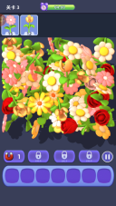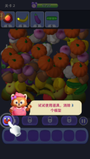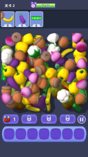 1、玩家需要在堆叠的物品里找出图案相同的,通过点击或滑动的方式达成三消或四消,当消除的物品数量达到指定要求后即可通关。