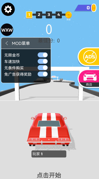 1、安装游戏,打开。我们点击屏幕任意位置即可开始游戏,点击右侧的“shop”即可打开游戏商店。
