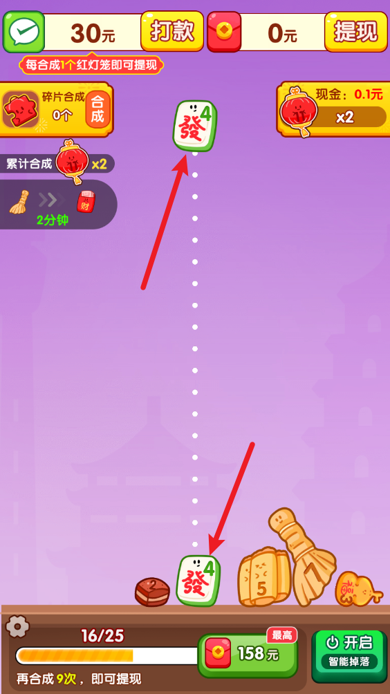 万事如意,轻松休闲的2048红包版合成游戏。通过简单的移动物品掉落进行合成,以此来不断能得到更高阶的物品,合成出最高阶的红灯笼即可领到红包福利!过程中我们还能够去开启智能掉落模式,能够解放你的双手,轻松的进行合成!