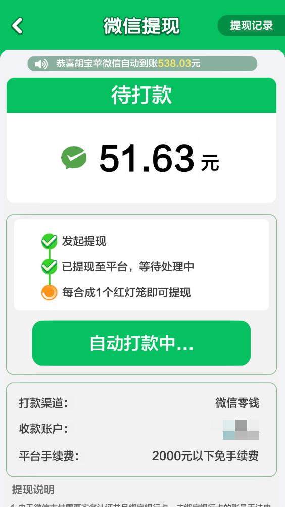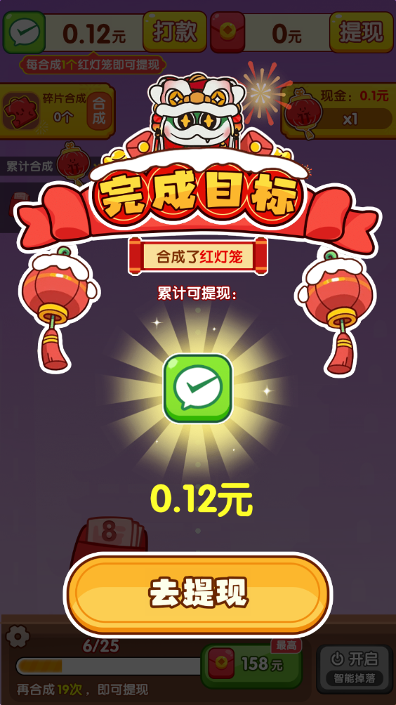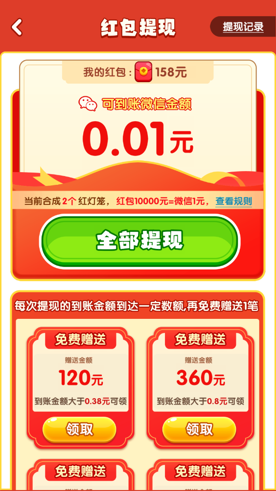 3、游戏内获得的红包都是真实有效的,合成出红灯笼就能直接兑换,实测都是秒到账哦!