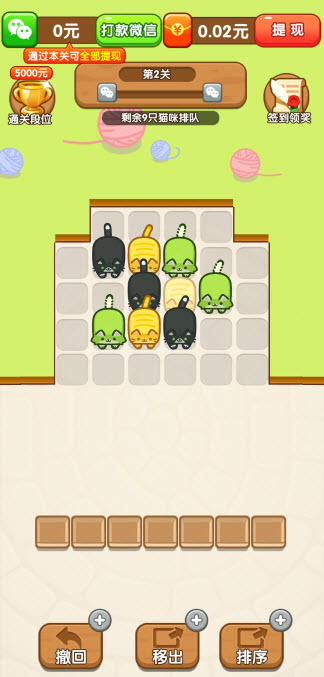 开心招财猫玩法简单,就是把三个颜色一样的猫咪连在一起消除掉。游戏的画面挺可爱的,有很多不同颜色的猫咪,看起来挺养眼的。每过一关,你都能拿到现金或者红包奖励,这个挺吸引人的,毕竟玩游戏的同时还能赚点小钱。