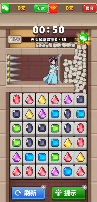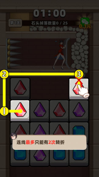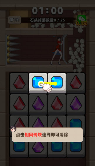 2、进入游戏界面,点击相同的砖块连接在一起即可消除。