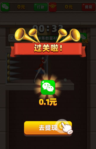 体验还算是比较新鲜的,加入了解救被困人质的元素,增加了游戏的紧张感。虽然红包是真实的,但是也只能得0.3,是很常见的0.3红包小游戏。