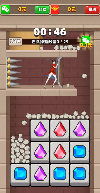 2、创新的加入了解救人质的玩法,如果没有消除完砖块,人物则会被尖刺刺死。