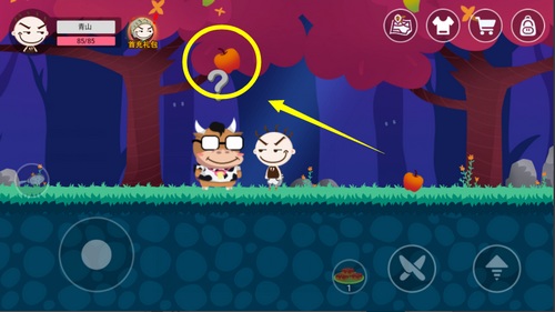 1、点击牛炖头上的苹果,苹果会落下砸中牛炖。(点击地上的苹果,就能自动获得苹果)