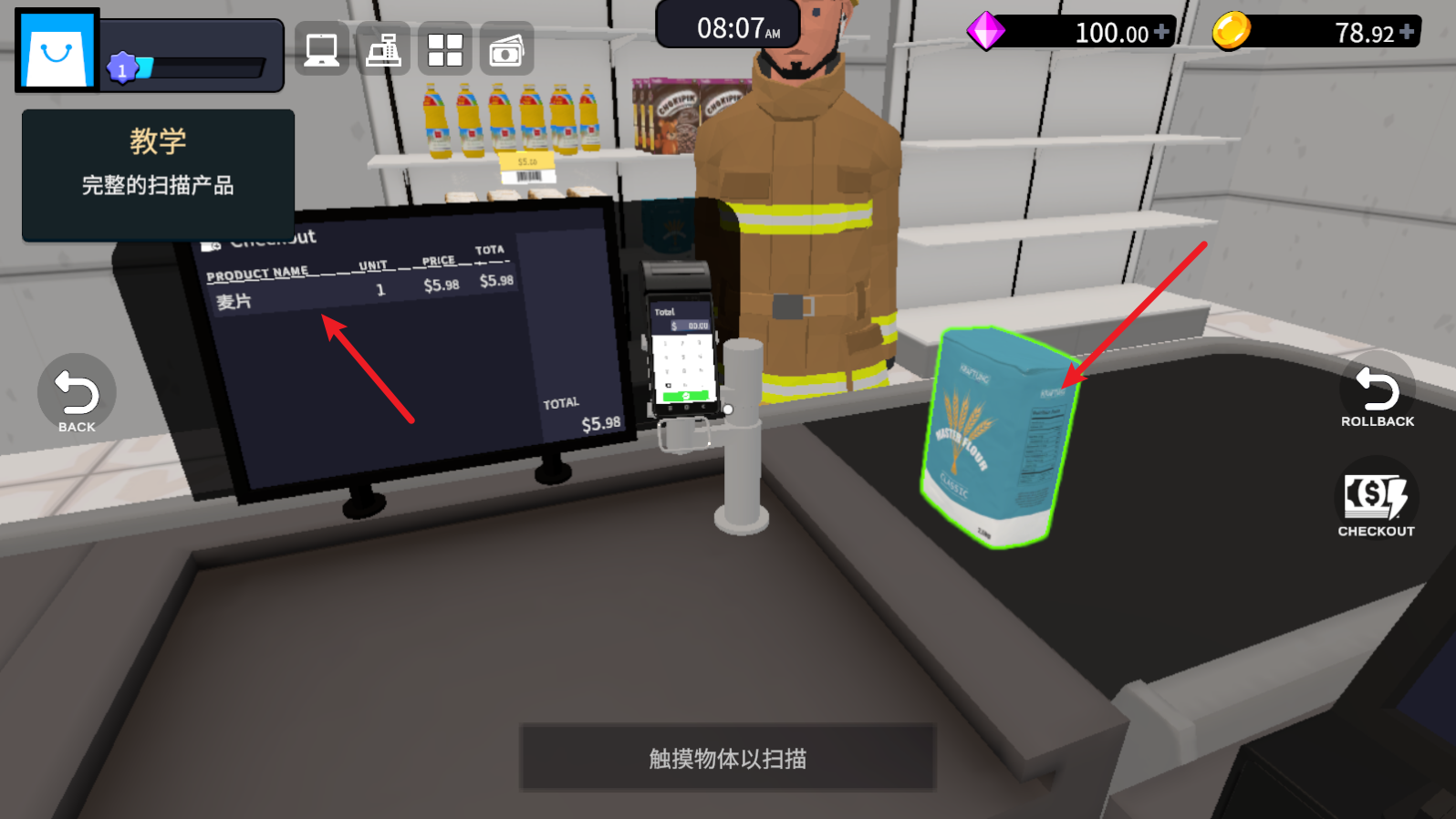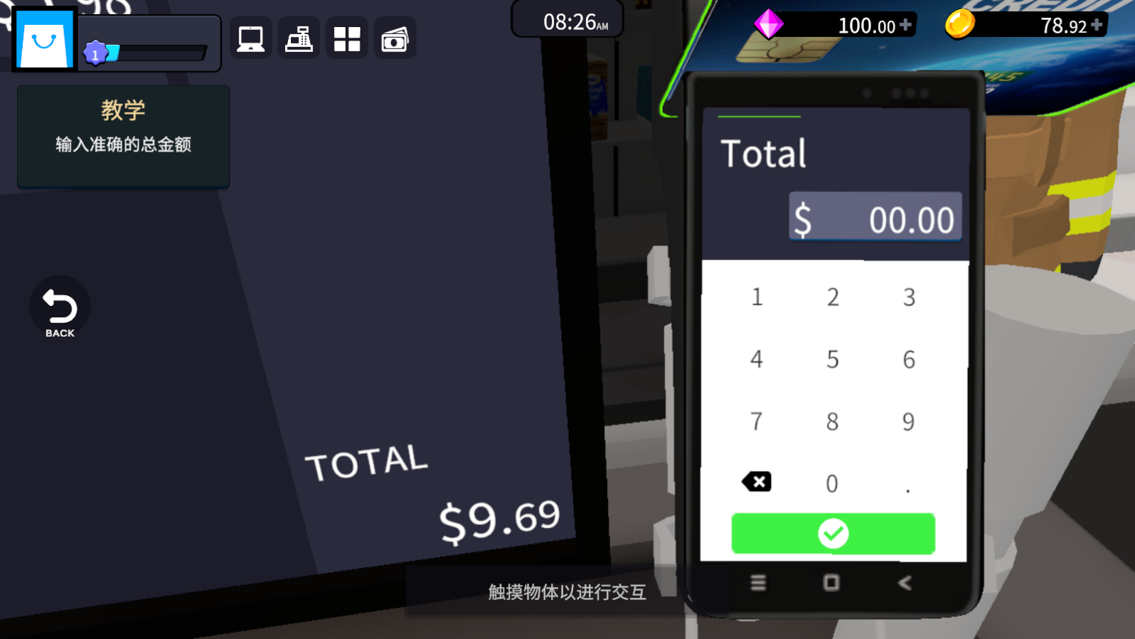 7、有客人之后,我们就在收银台等候即可,点击物品即可计算总价。