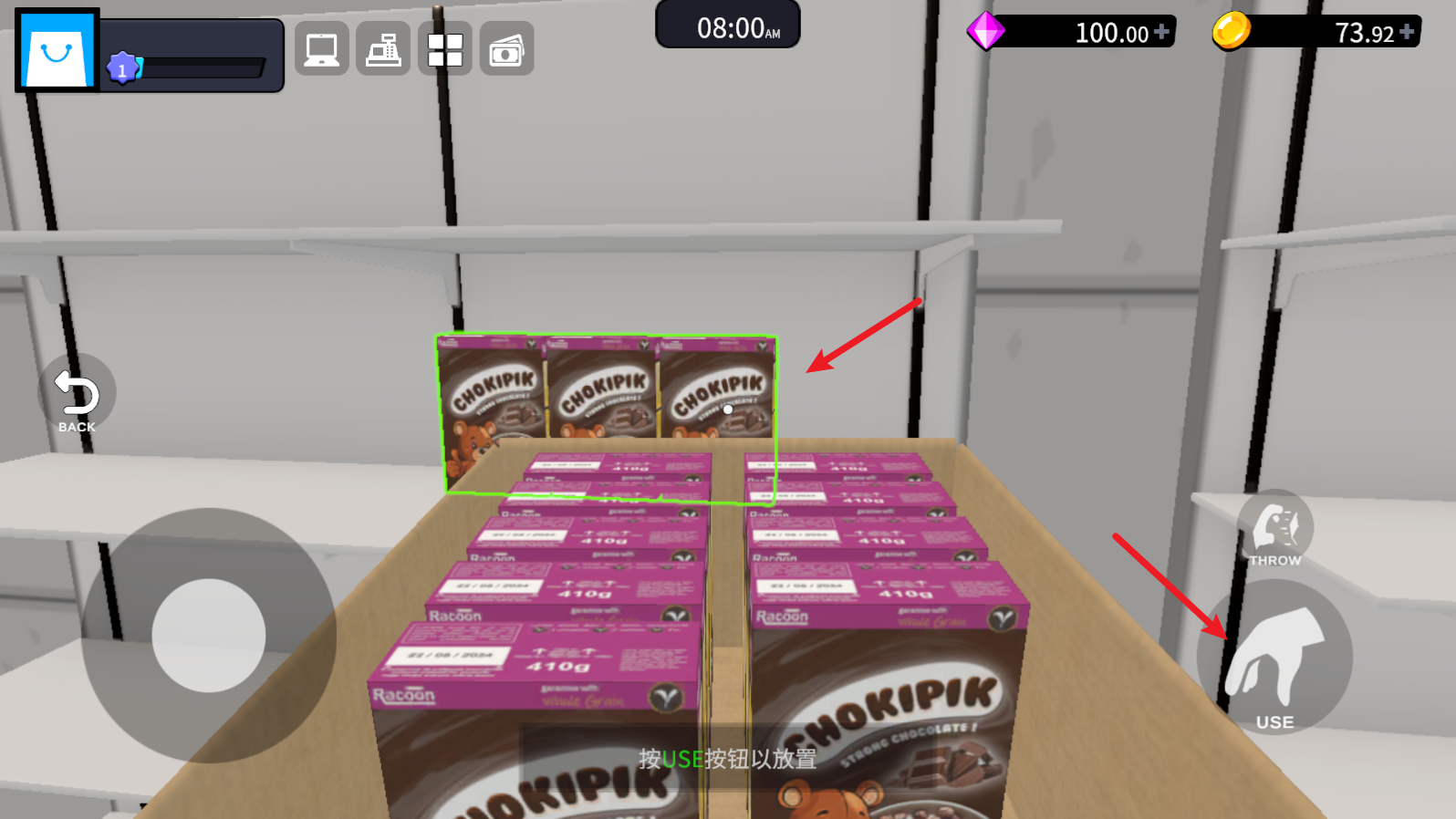 3、右上角会显示自己货物送达的时间,然后将货物直接摆放到货柜上。