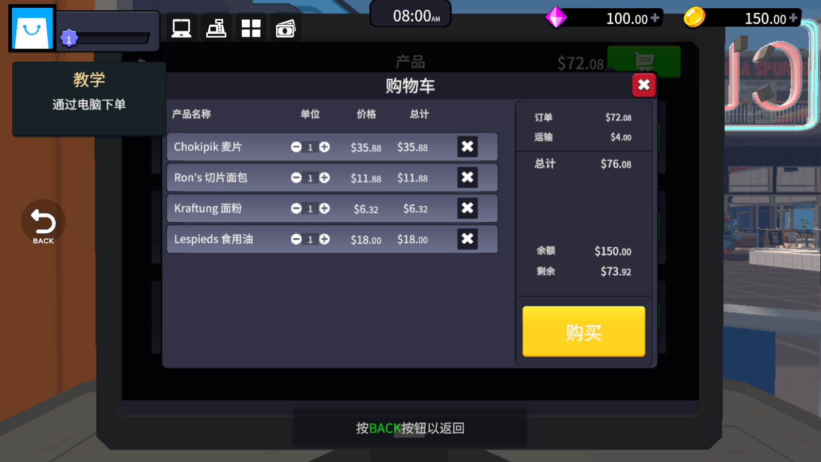 这个游戏的正确玩法是分屏挂机,我习惯是货架两边留空间每样放三箱货,方便上货;多的门口电梯下。都分类叠放,就知道什么时候该进货、进什么。开第一个新商品时要备足钱同时买冰箱和进货,开商品权限之后客人就会有买不到商品的差评。之后开也一样注意货柜数量!