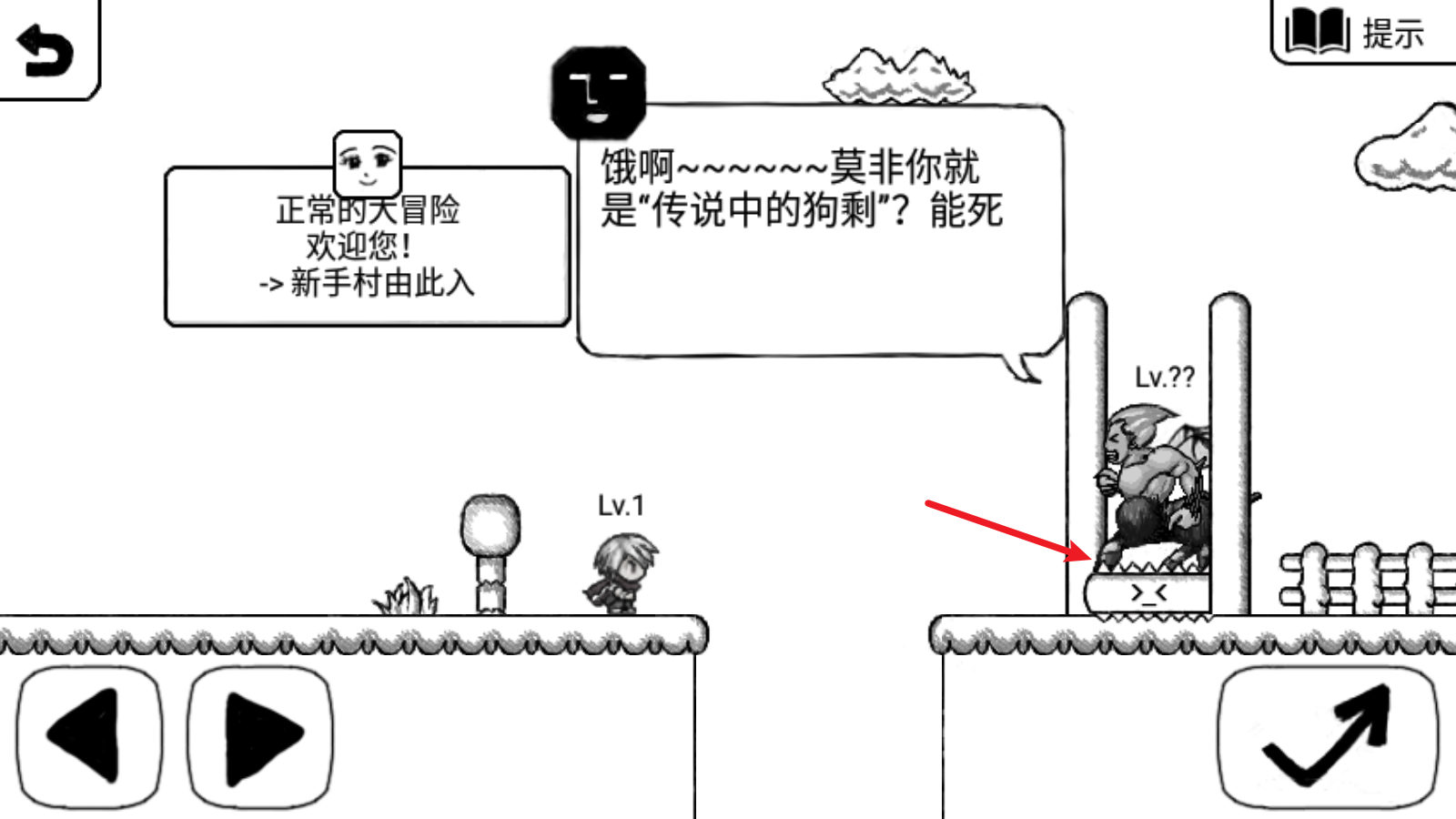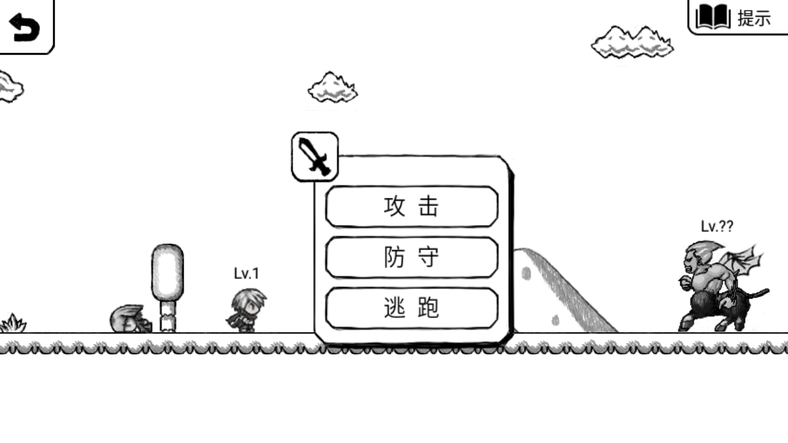 5、通过前面的障碍后,回来到第一关的BOSS这里,以我们的能力无论攻击或者防御都是不可能的,所以选择逃跑,然后直接向左跑。