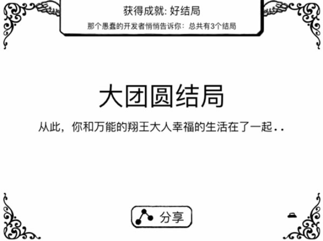 1、大圆满结局:从此,你和万能的翔王大人幸福的生活在了一起。