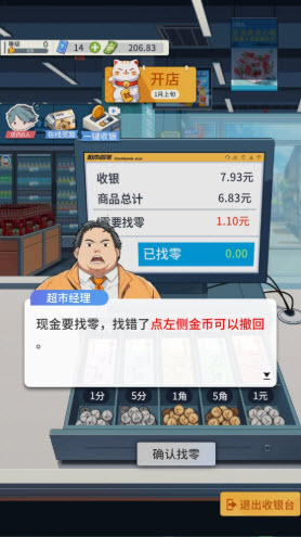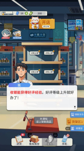 游戏的玩法操作都很简单,玩家需要扮演超市老板,经营超市供货收银赚钱就可以。