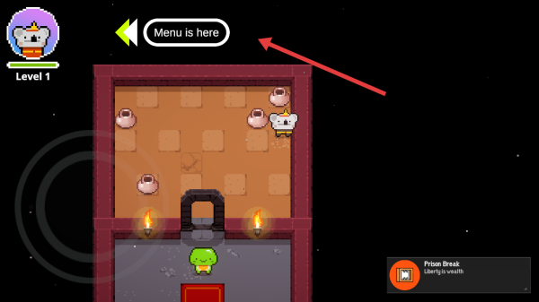 1、在Level1界面,点击“Menu is here”旁边的箭头即可进入地牢场景,随后操控考拉角色展开探索,打破陶罐能触发互动,以此推进关卡进程。