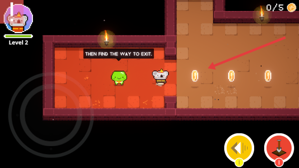 2、Level2按照“THEN FIND THE WAY TO EXIT”的提示,引导角色移动以收集5枚金币,过程中避开场景里的障碍,达成收集目标。