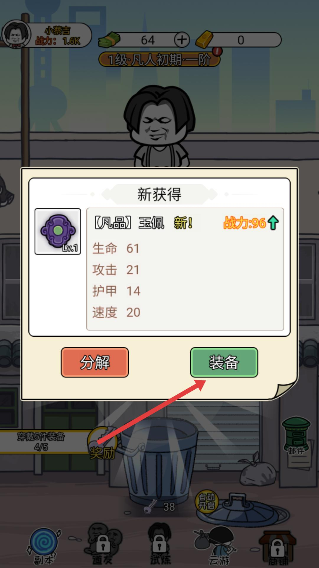 3、获取新玉佩后,先查看其属性,接着点击装备按钮进行穿戴;待装备数量凑齐时,即可领取相应的奖励。