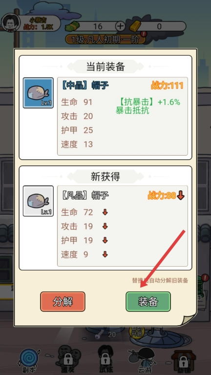 2进入装备相关的操作界面后,找到帽子类装备的展示区域,将待更换的新帽子与当前佩戴的旧帽子在各项能力加成方面进行比对,确认新帽子更优后,点击新帽子完成穿戴操作,以此实现旧装备的更替并使自身战斗能力得到增强。