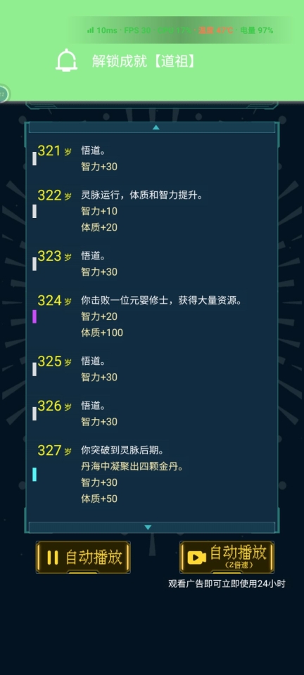 打魔道,体智飞跃,体>2500达成仙王成就