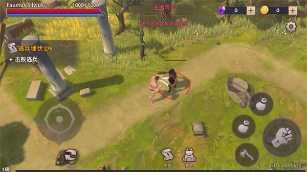 1、玩家可以在游戏中控制自己的角色随意移动,在森林中展开一场有趣的砍杀战斗。
