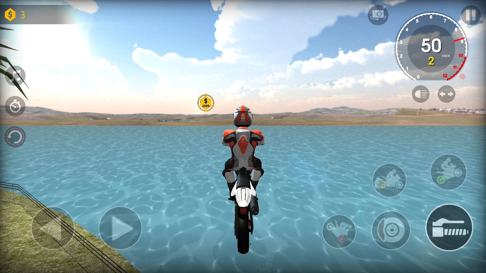 1、超级逼真的物理引擎,真实的模拟了摩托车的各种细节,让你拥有最棒的摩托车驾驶体验!
