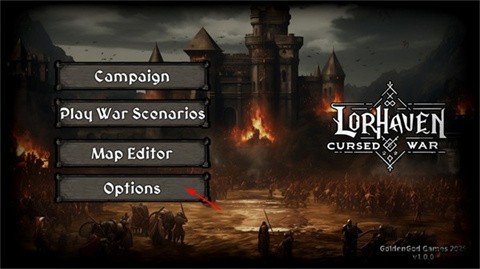 1、打开游戏后点击主界面的options按钮进入设置界面。