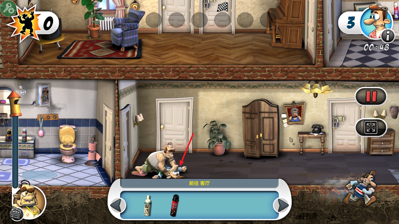 3、游戏中我们需要搜寻场景中的道具,以此来实现恶作剧。