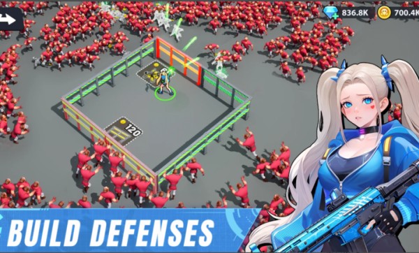 1、控制你的角色守卫基地,使用武器不断射击丧尸大军,将其全部射杀。