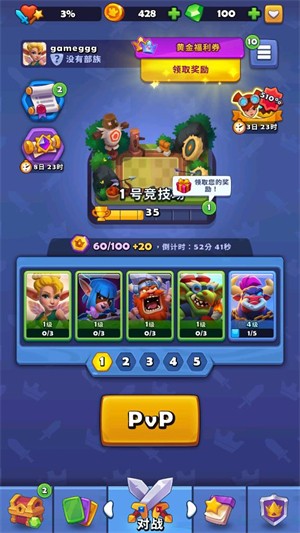 1、进入游戏后点击PVP按钮开始匹配玩家对战。
