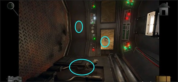 22、进入隧道先往左走,经过一个路口再往右走来到岗亭,接着进入岗亭完成桌子上的控制面板机关,按亮起的顺序点击按钮,完成三次即可。