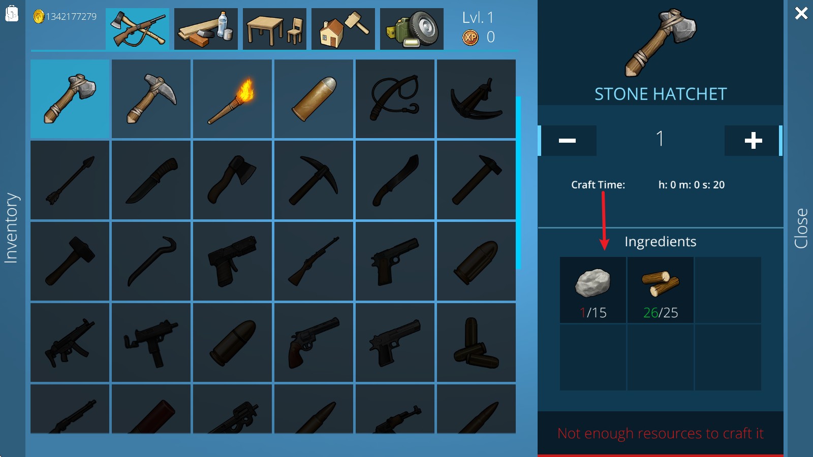 2、在这里选择需要制作的武器,并收集好对应的材料。