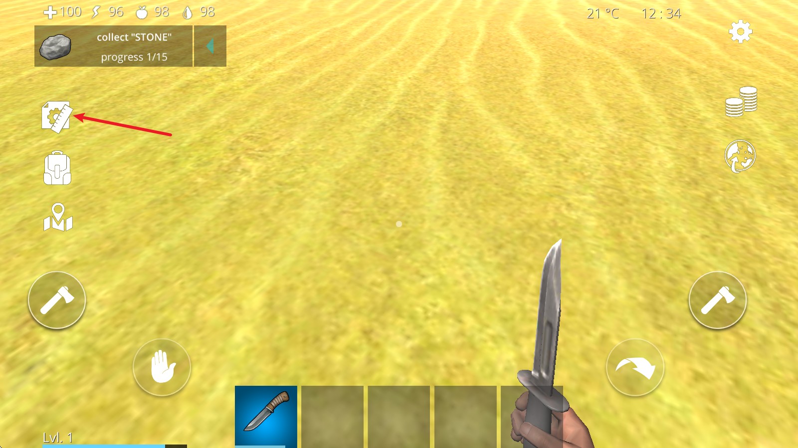 4、随后我们就可以使用制作好的工具了,例如这里的石斧。