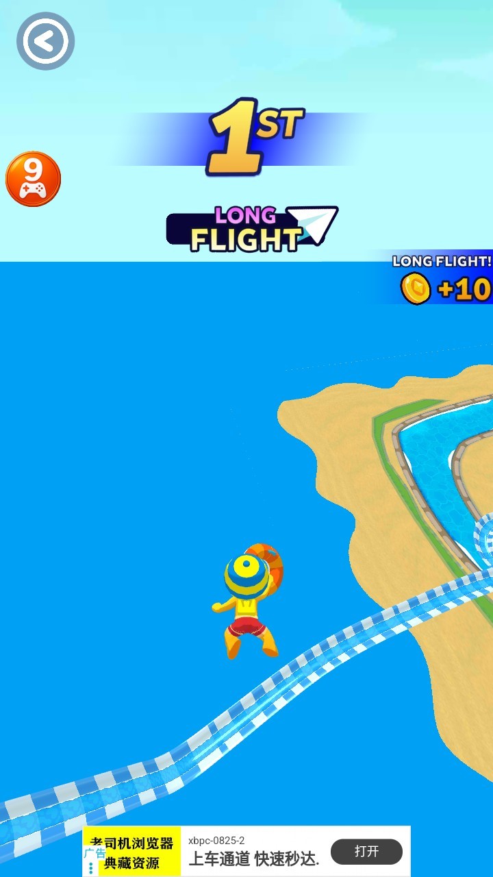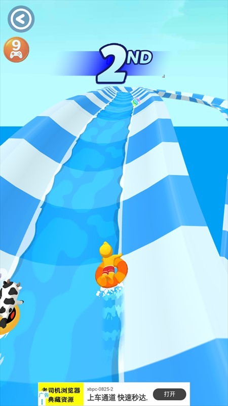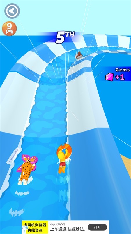 2、竞速游戏,玩家要在水上乐园中滑行,不要掉落到滑梯外。