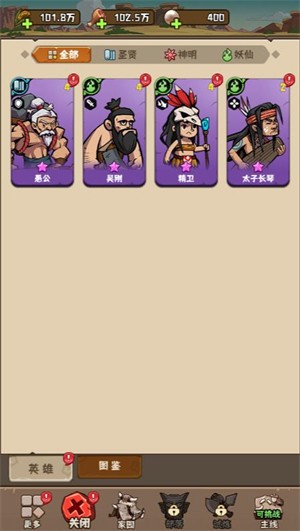 4、点击下方的英雄按钮可以对角色进行升级,除此之外还可以对影响进行升星。