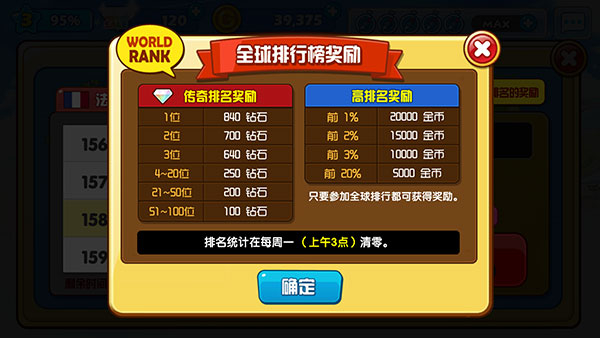 玩家在全球排行榜上的名次对应的奖励,可于下周一通过奖励领取界面进行领取(界面示例见下图)。