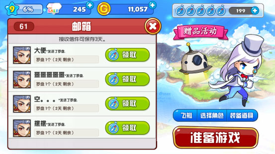 2、好友赠送,可以在邮箱中领取(如下图所示)