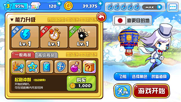 在准备界面里,你可以挑选携带普通商品或者高级商品进入游戏(如下图展示)