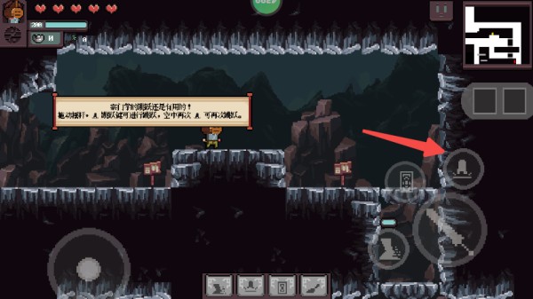 1、玩家可通过左下角的摇杆操控角色的移动方向,右下角的按键则对应攻击、跳跃等功能。